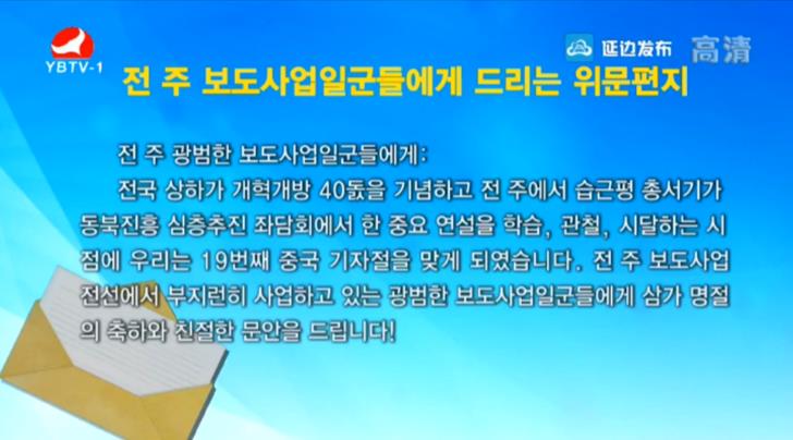 주당위 선전부 연변보도사업일군협회, 전 주 보도사업일군들에게 위문편지를 보내와