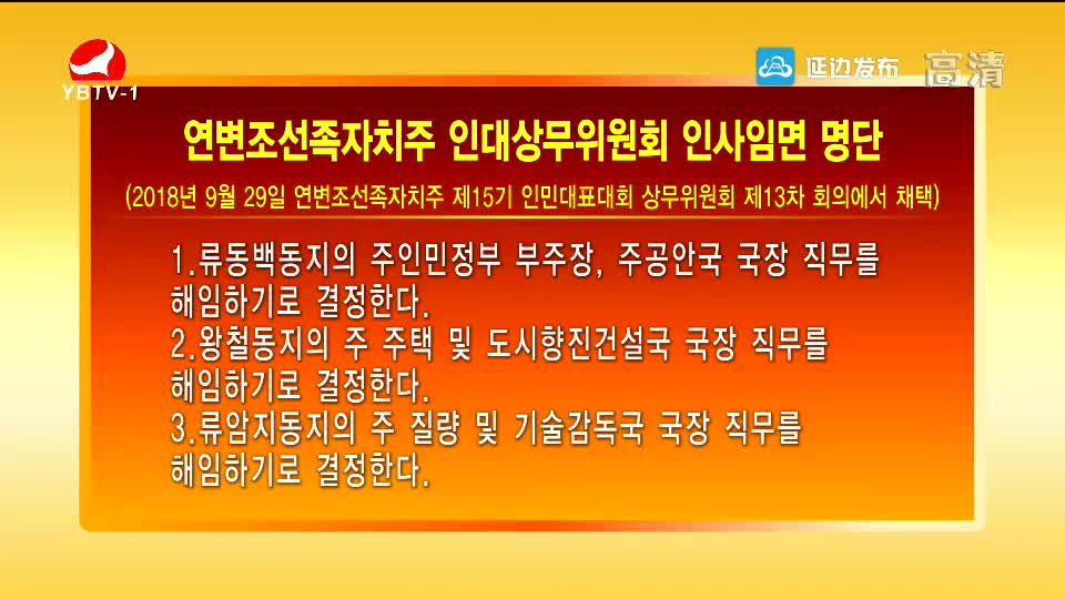 연변조선족자치주 인대상무위원회 인사임면 명단