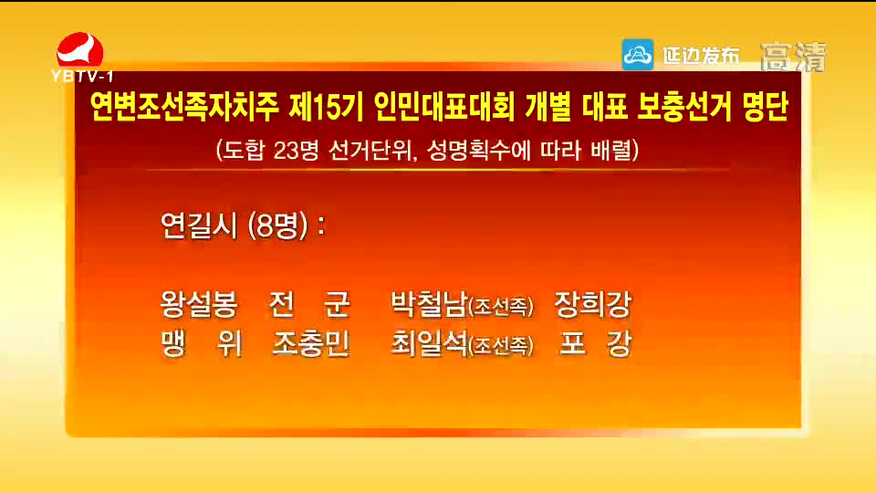 연변조선족자치주 제15기 인민대표대회 개별 대표 보충선거 명단