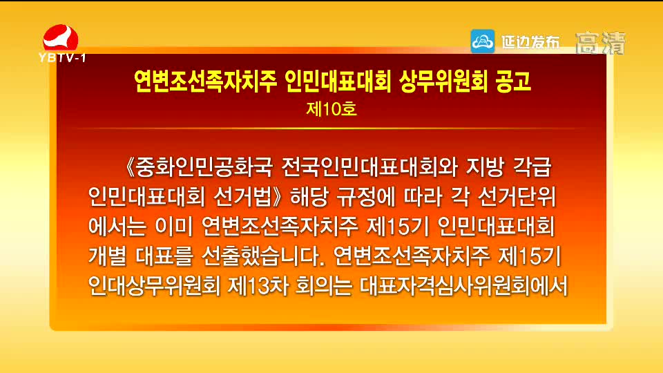 연변조선족자치주 인민대표대회 상무위원회 공고
