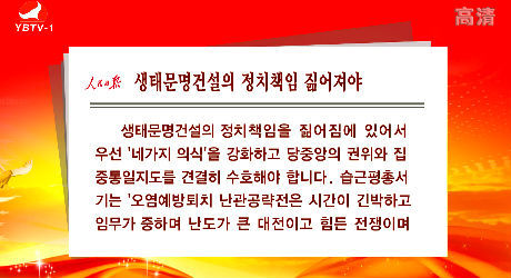 인민일보 론평: 생태문명건설의 정치책임 짊어져야