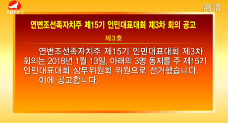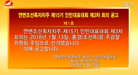 연변조선족자치주 제15기 인민대표대회 제3차 회의 공고 제1호