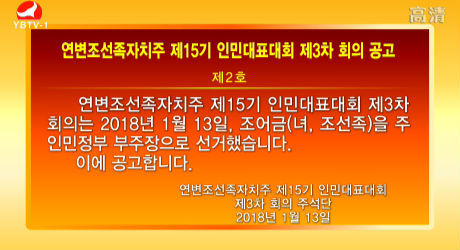 연변조선족자치주 제15기 인민대표대회 제3차 회의 공고 제2호