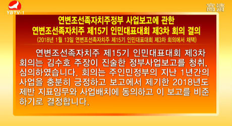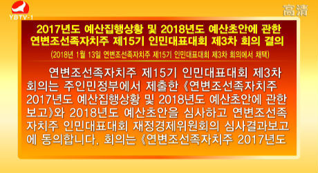 2017년도 예산집행상황 및 2018년도 예산초안에 관한 연변조선족자치주 제15기 인민대표대회 제3차 회의 결의