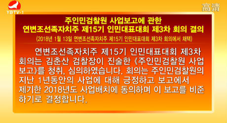 주인민검찰원 사업보고에 관한 연변조선족자치주 제15기 인민대표대회 제3차 회의 결의