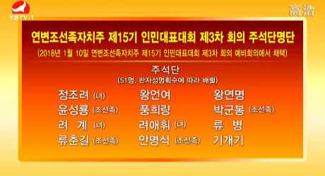 연변조선족자치주 제15기 인민대표대회 제3차 회의 주석단명단