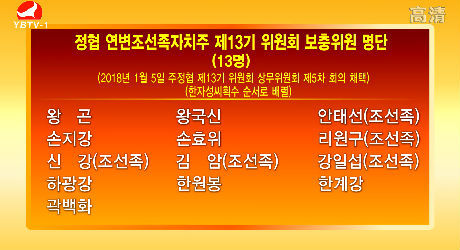 정협 연변조선족자치주 제13기 위원회 보충위원 명단