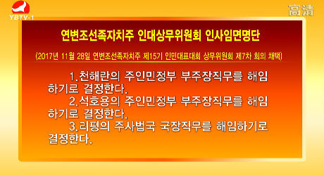 연변조선족자치주 인대상무위원회 인사임면명단