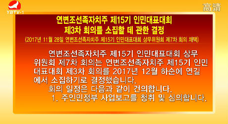 연변조선족자치주 제15기 인민대표대회 제3차 회의를 소집할 데 관한 결정