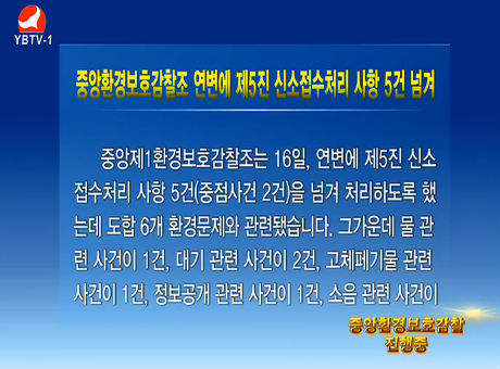 중앙환경보호감찰조 연변에 제5진 신소접수처리 사항 5건 넘겨