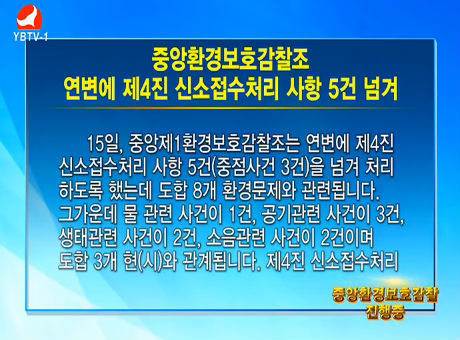 중앙환경보호감찰조 연변에 제4진 신소접수처리 사항 5건 넘겨