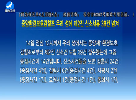 중앙환경보호감찰조 우리 성에 제2진 신소서류 39건 넘겨