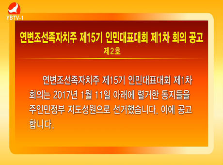 연변조선족자치주 제15기 인민대표대회 제1차 회의 공고 제1호