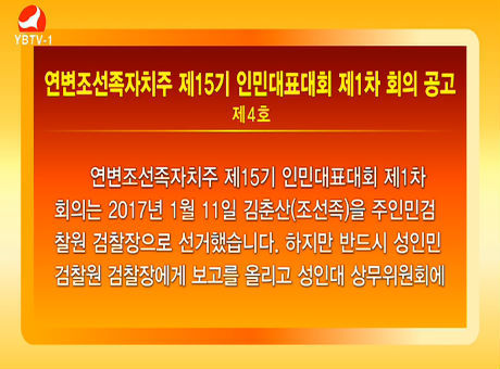 연변조선족자치주 제15기 인민대표대회 제1차 회의 공고 제4호