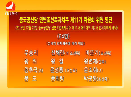 중국공산당 연변조선족자치주 제11기 위원회 위원 명단