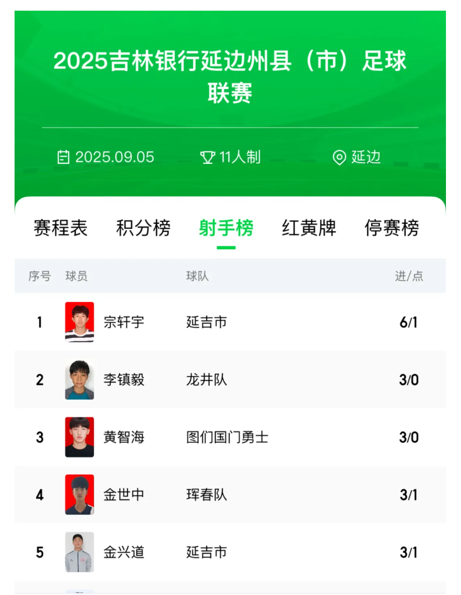 2025년 길림은행 연변주 현(시) 축구리그 5라운드 승부 및 순위표!