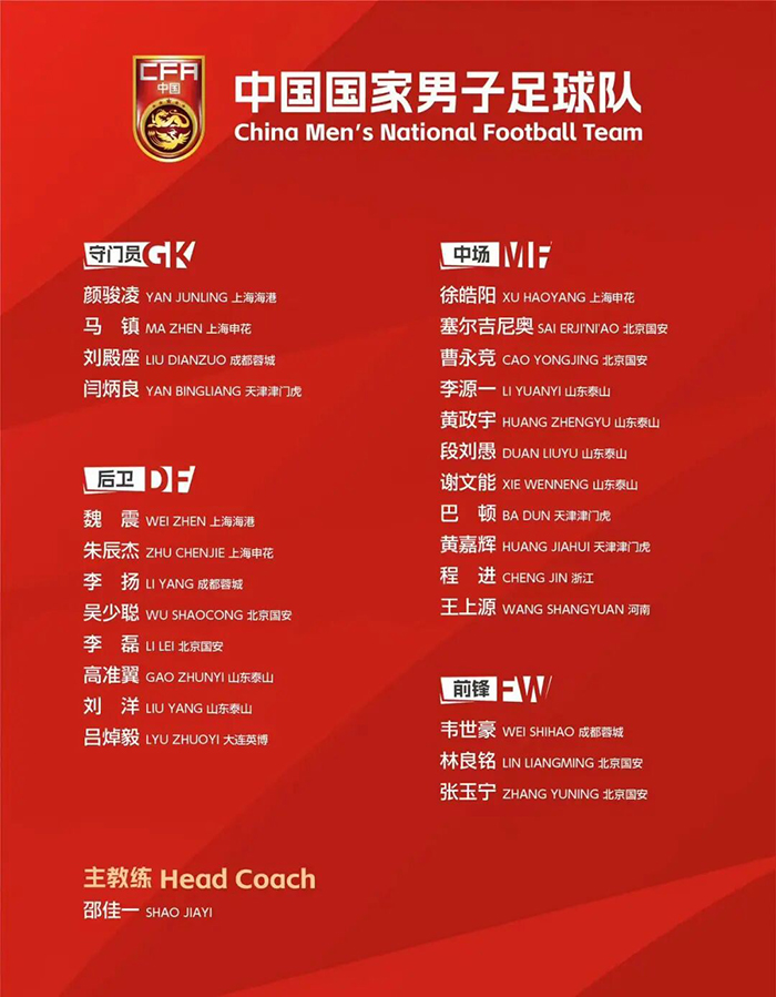 이번기 국가팀은 1월 4일부터 27일까지 선후로 광동과 아랍에미리트 두바이에서 집중훈련을 하고 사우디아라비아에서 열리는 U23 아시안컵에 참가할 예정이다.