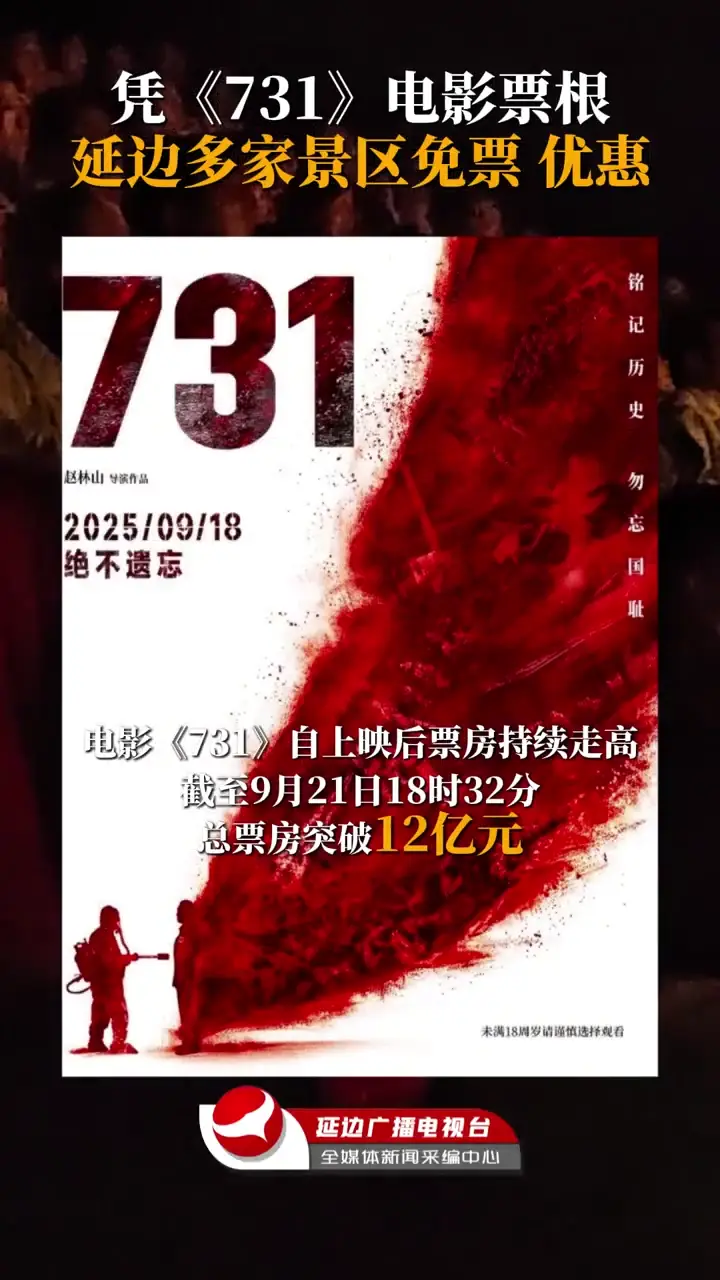 《731》 영화관람권으로 연변의 여러 관광지 무료 입장권과 할인 혜택 제공