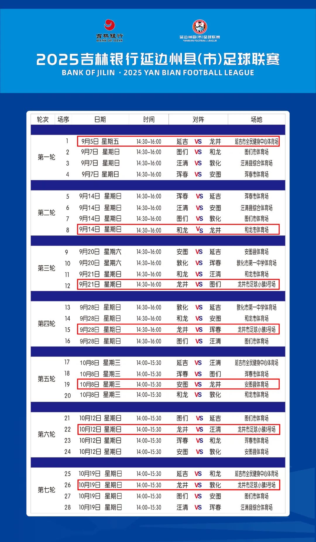 [축구경기 보러 가요] 2025길림은행연변주현(시)축구리그 경기일정표!