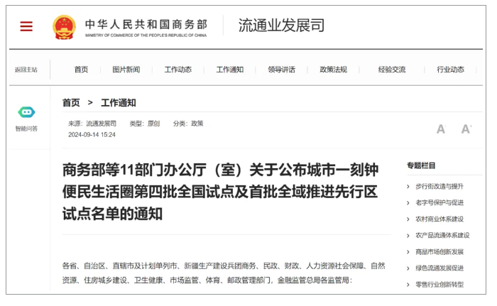 일전, 상무부 사이트에서는 도시 15분 편민생활권 제4진 전국 시점 및 제1진 전역 추진 선행구 시점명단을 공포했다. 상무부 등 11개 부문에서는 전국 제4진 도시 15분 편민생활권 시점지역 60곳, 도시 15분 편민생활권 ...