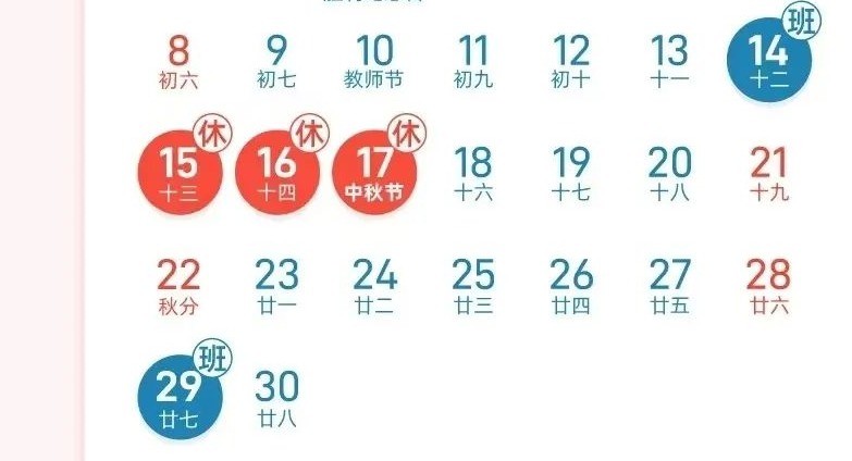 추석 련휴가 결속되고 국경절 련휴가 곧 다가온다 다음 주 출근시간이 변동된다
