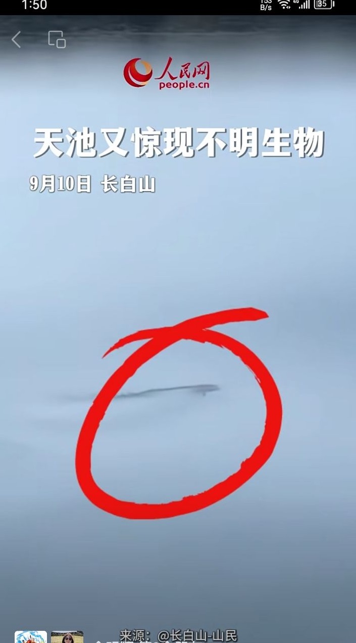 10일 인민넷길림은 공식 위챗계정을 통해 천지에 또 정체를 모를 생물이 나타났다고 보도했다.