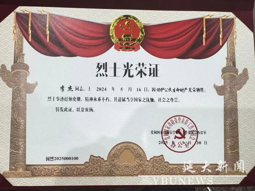 연변대학 경제관리학원 학생 리걸, 렬사칭호 추서