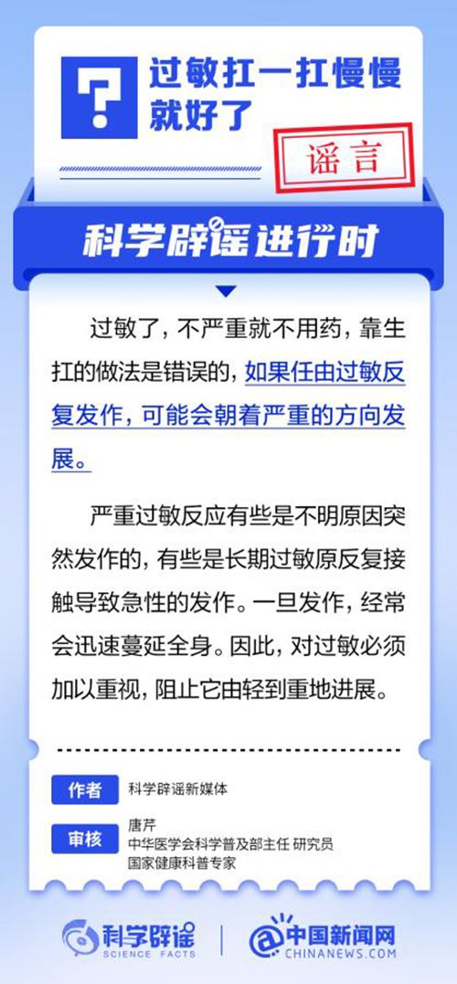 알레르기가 심하지 않으면 약을 쓰지 않고 혼자 천천히 낫도록 방치하는 것은 잘못이며 만약 알레르기가 반복되도록 내버려둔다면 심각한 방향으로 발전될 수 있다.중증 알레르기반응중 일부는 원인을 알 수 없는 갑작스러운 발작이고 일...