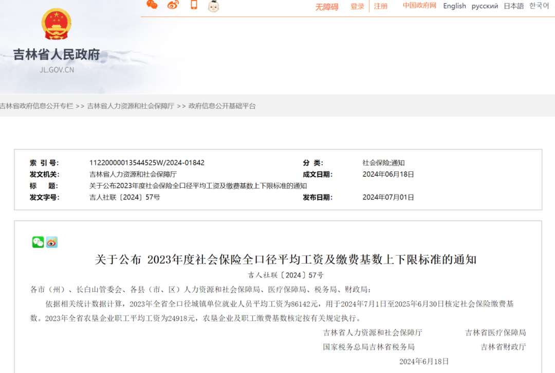 [최신!] 길림성 전반 통계범위내 평균로임 공포!