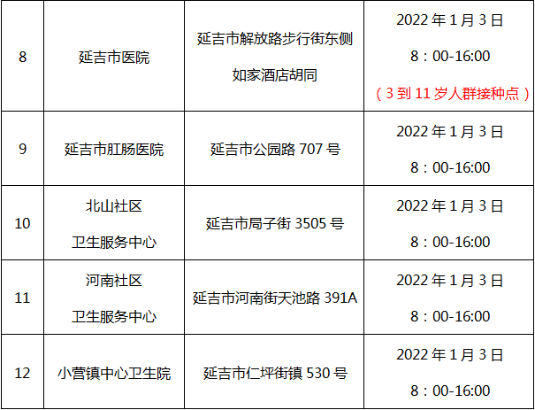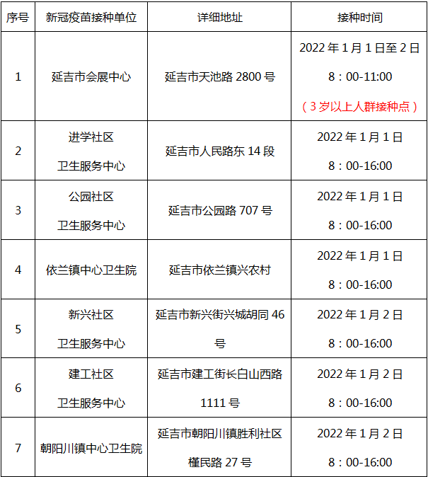 <2022년 부분적 명절 배치에 관한 국무원판공청의 통지> 규정에 따라 2022년 양력설에는 1월 1일부터 3일까지 휴식한다. 양력설기간 신종 코로나 바이러스 백신 접종점의 구체적 접종시간 통지는 다음과 같다.