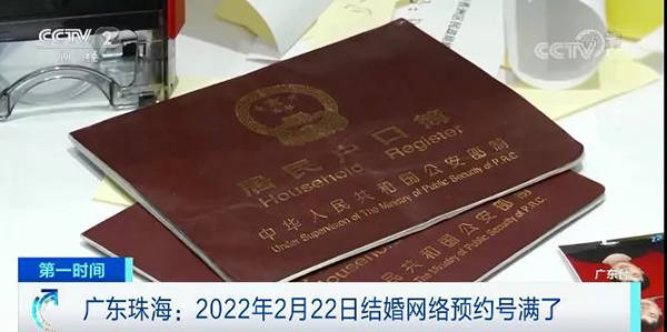 광동 주해민정 위챗공식계정 혼인신고예약으로 보면 2월 22일 당일, 현지 각구의 남은 예약번호는 모두 ‘0’으로 나타난다. 하지만 이날 전후의 시간에는 대량의 번호가 남아있는 상태이다. 광동 주해시 금만구혼인신고처 문앞에서 많은 사람들은 2월 22일이 특별하다면서 이날 혼인신고가 가능한지 물었다.