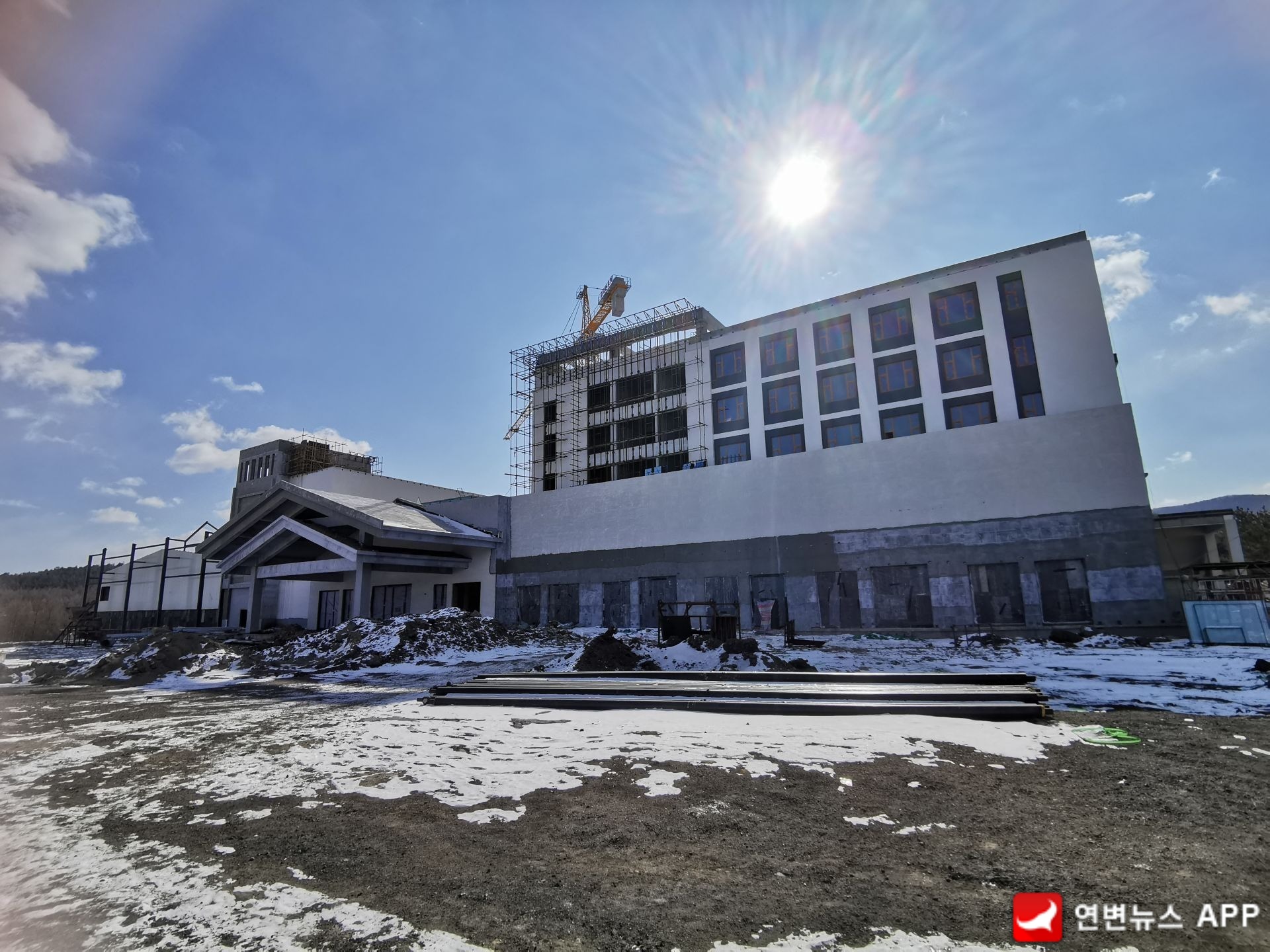 대상건설 현장에서 60여명의 시공일군들이 한창 건설템포를 다그치고 있으며 목전 대상주체공사가 기본상 완성되였다.