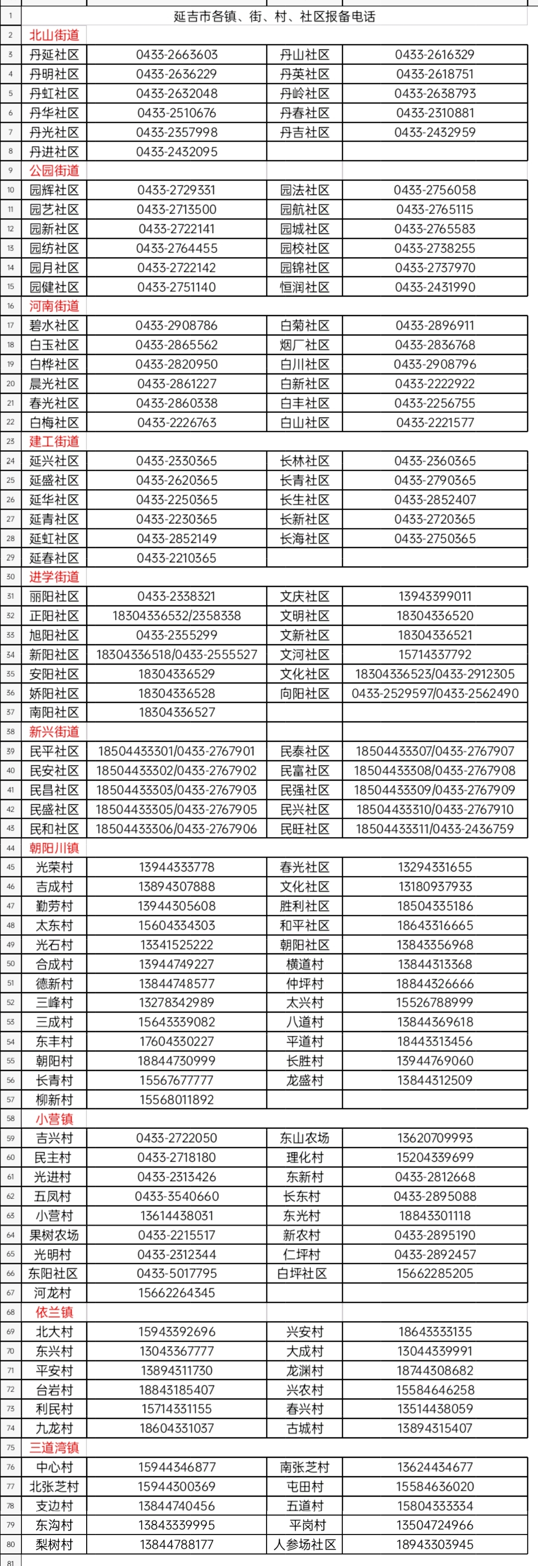 목전 전 시 전염병 예방통제 사업의 실제수요에 따라 3월 1일 이래 연길에 와서 (주내 포함) 사회구역(촌)에 보고등록하지 않은 인원은 신속히 보고등록하기 바랍니다. 사회구역(촌)에 전화를 하거나 큐알코드를 스캔하여 스스로 등록할 수 있습니다. 또한 주동적으로 사업일군의 사업에 협조하여 신분정보 대조확인, 핵산검측, 체온측정 등 사업을 잘하기 바랍니다. 자가격리인원은 격리관리통제규정을 잘 준수하고 격리관찰기간에 절대 외출하지 말아야 하며 매일 건강상황을 수시로 사업일군에게 보고해야 합니다. 관찰기간에 규정을 어기고 자신의 상황을 속이는 등 현상이 발견될 경우 법에 따라 법률적 책임을 엄하게 추궁할 것입니다.