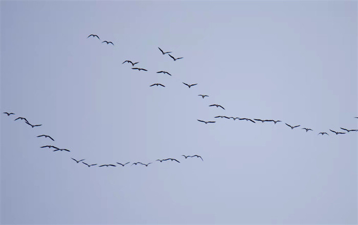이 기러기들은 상공에서 질서정연한 대형을 만드는가 하면 각양각색의 조형도 만들어냈다. 이주하는 계절이면 수십마리, 수백마리, 심지어는 수천마리가 기러기떼를 형성하는데 그중 경험이 있는 코기러기가 비행을 이끌군 한다. 이들은 때로는 '인'자, 때로는 '중'자, 때로는 '일'자 모양으로 줄지어 북쪽으로 향해 날아간다. 그 장면은 장관을 이루며 한폭의 아름다운 생태화폭을 이룬다. 보기 드문 기러기떼들의 비상은 짧은 시간안에 수많은 관광객을 흡인했다.