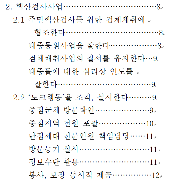 (3) 소구역내 순라를 전면적으로 강화하여 마실군이나 나들이군을 발견하면 즉시 집에 돌려보낸다. 통제출입구를 강제로 통과하거나 충고해도 듣지 않을 경우 공안기관에 법에 따라 처리할 것을 요구할 수 있다.