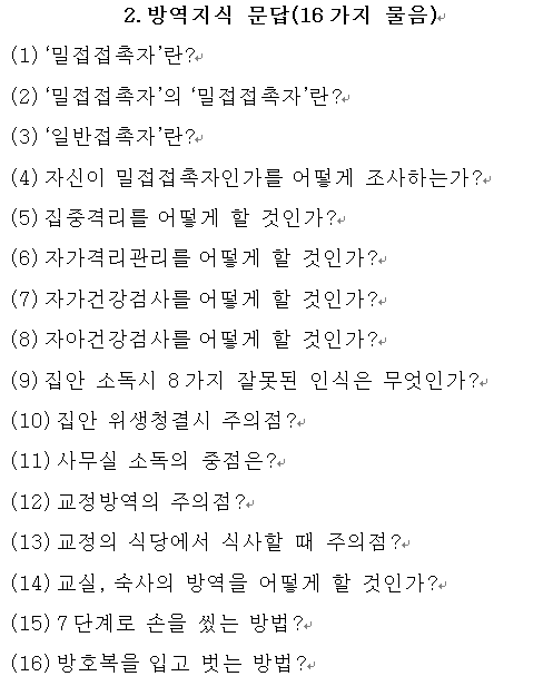 (14) 교실, 숙사의 방역을 어떻게 할 것인가?
