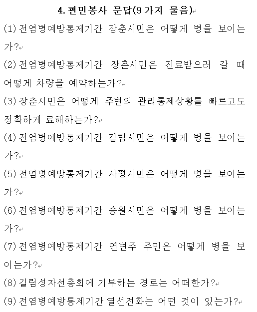 9. 전염병예방통제기간 열선전화는 어떤 것이 있는가?