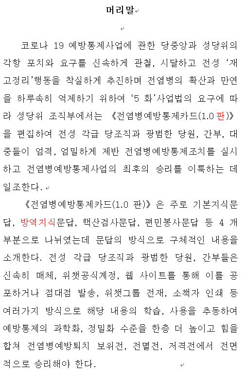 ① 전성 질병예방통제기구 코로나19예방통제사업 자문전화