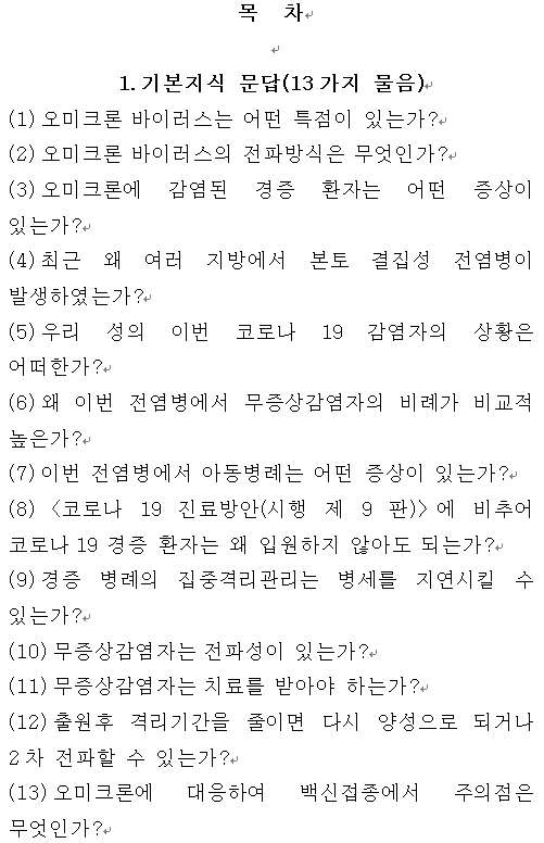 (3) 오미크론에 감염된 경증 환자는 어떤 증상이 있는가?