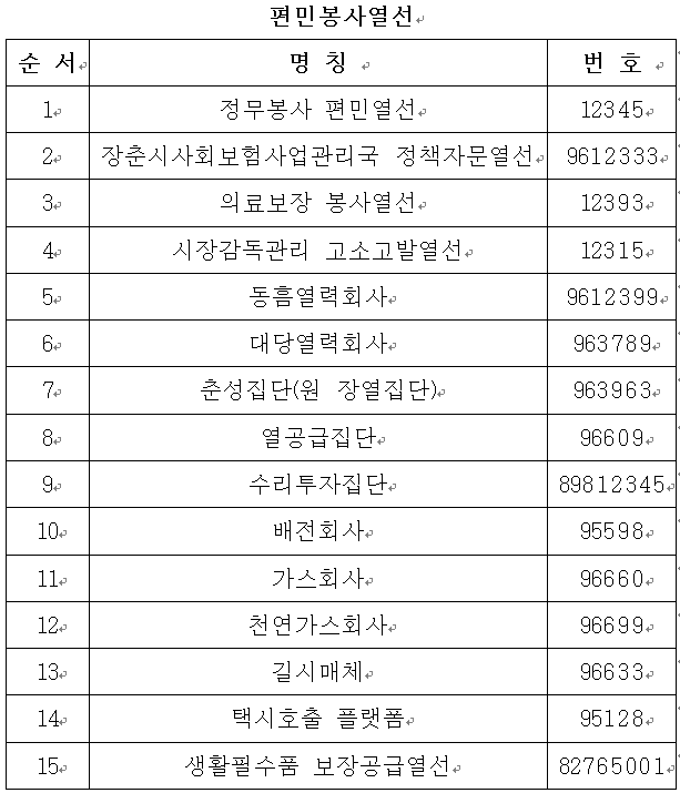 ④ 장춘시 시급사회구역관리통제봉사 열선전화