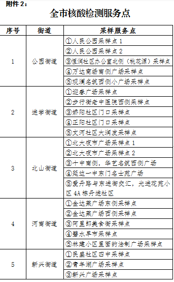 1) 도시구역 각 주거단지, 각 향진, 각 촌툰에 설치한 전염병 예방통제 검사점(봉쇄통제구, 관리통제구 제외)을 취소한다. 도시구역내, 각 향진 내부 공공뻐스와 장(단)거리 려객운수뻐스 외 기타 차량, 인원은 정상 통행할 수 있다.