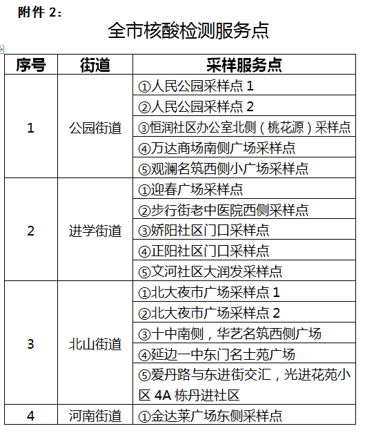 2. 전 시 핵산검측 봉사장소