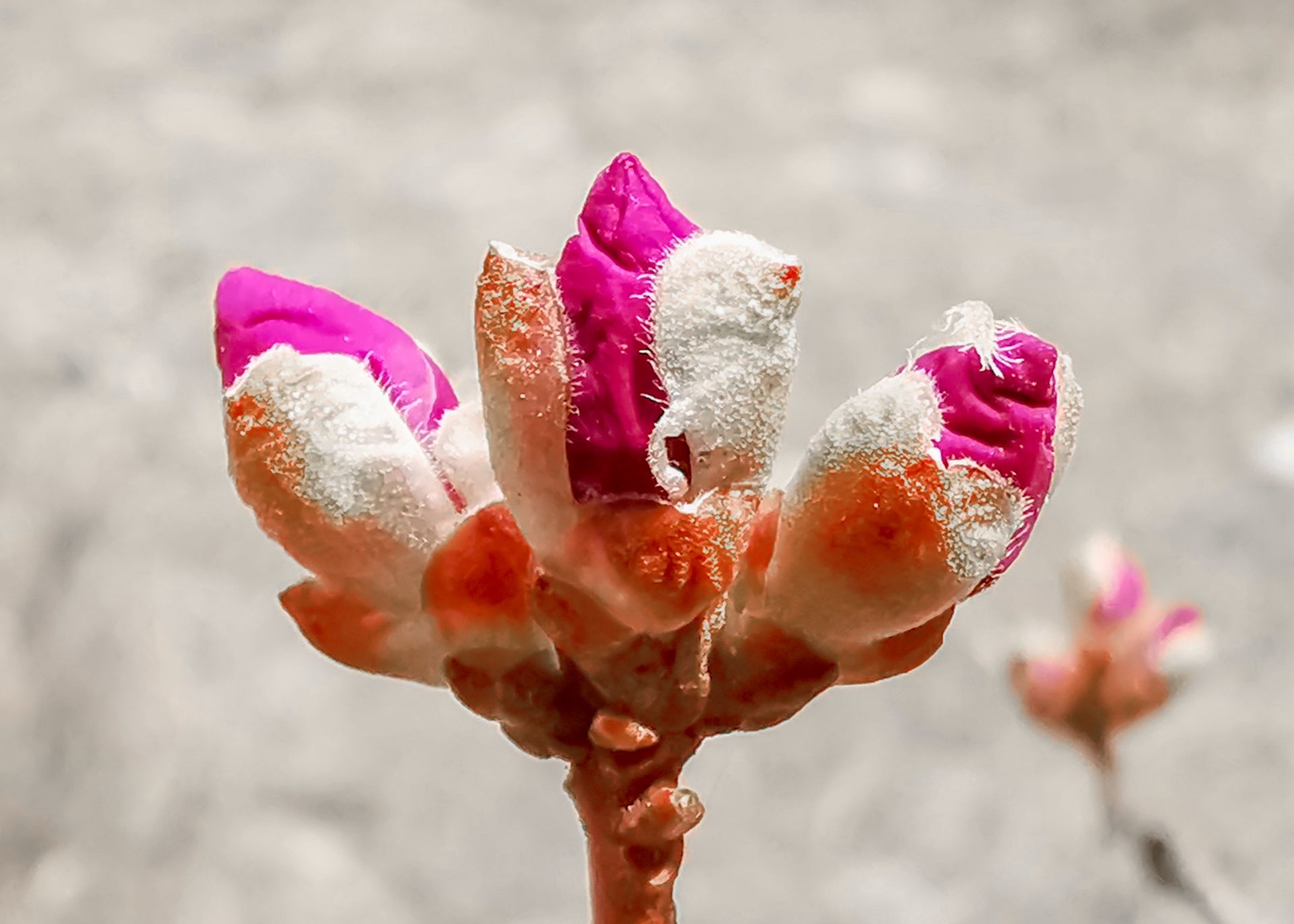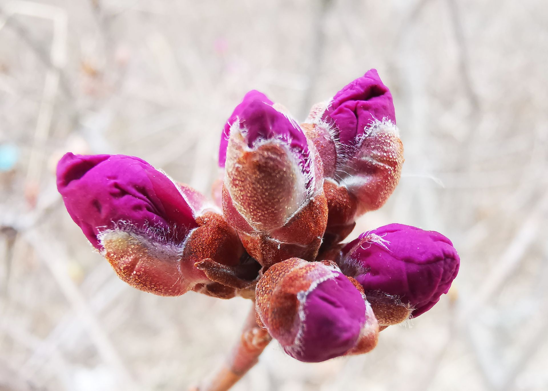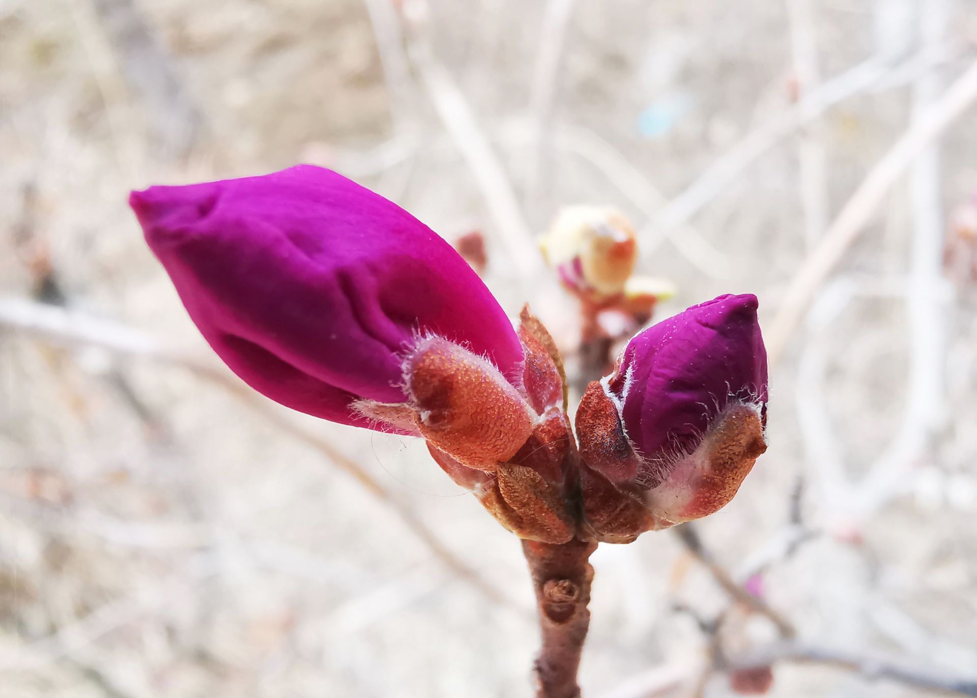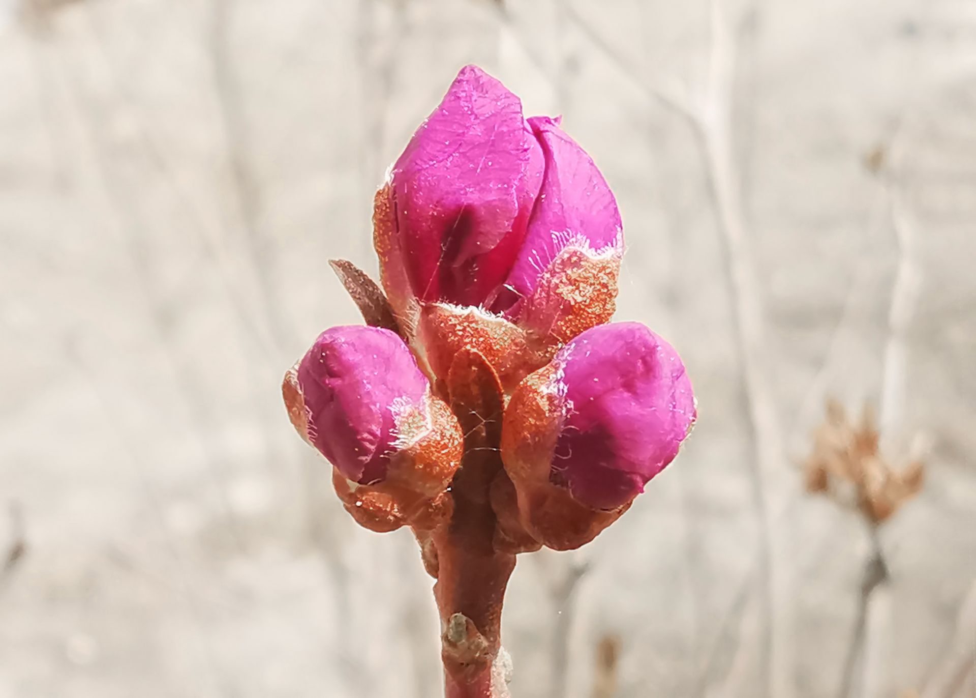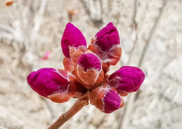 전염병의 시련속에서도 "봄의 선구자" 진달래는 어김없이 이쁜 꽃을 피우면서 봄소식을 전해주고 있다. 4월 12일 촬영사가 훈춘시에서 망울진 진달래를 촬영했다.