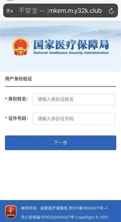 “즉각 취급” 버튼을 누르자 “국가의료보장국”이라는 글자가 적힌 웹사이트에 접속됐고 이름, 증명번호 등을 입력해 신분을 확인해야 한다고 제시했다.