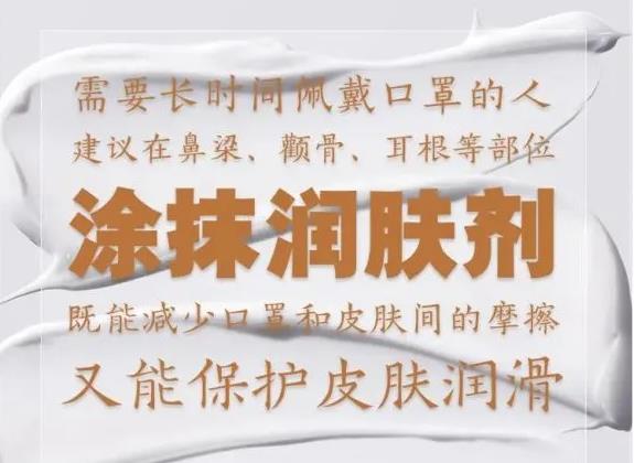 5. 오랜 시간 동안 마스크를 착용해야 하는 인원은 코등, 광대, 귀바퀴 뒤부분 등에 피부완화제를 바르면 마스크와 피부 사이의 마찰도 줄일 수 있고 또 매끄러운 피부도 유지할 수 있다.