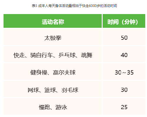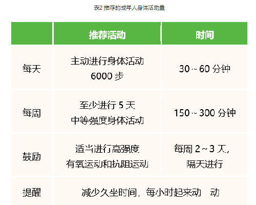 ● 각 년령단계 군체는 매일 신체활동을 진행해 건강한 체중을 유지해야 한다.