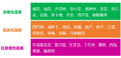 ● 매끼마다 야채가 있고 매일 섭취량이 최소 300g에 달해야 한다. 그중 색상이 짙은 야채가 1/2를 차지해야 한다.