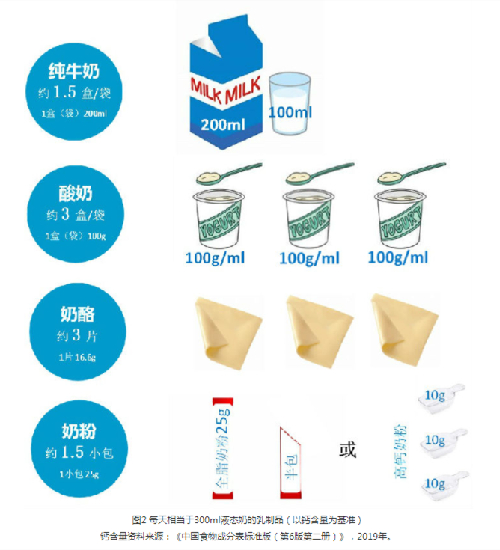 ● 여러가지 유제품을 섭취하고 섭취량은 매일 300ml이상의 액체우유에 상당해야 한다.