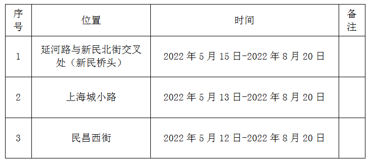 2022년 사업배치에 따라 연하로 연장공사가 전면적인 시공에 들어간다. 시공수요에 따라 연하로와 신민북교 교차점(신민교 교두), 상해성 골목, 민창서거리를 봉쇄한다. 시공구간 차량통행을 금지하기에 기타 도로를 선택하여 에돌아가기 바란다.