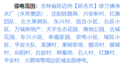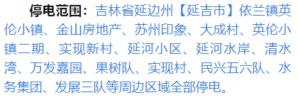시공시간이 림시 조정된 원인으로 국가전력망 연길시도시교외배전회사의 원 2022년 5월 24일 계획정전을 아래와 같이 변경한다.